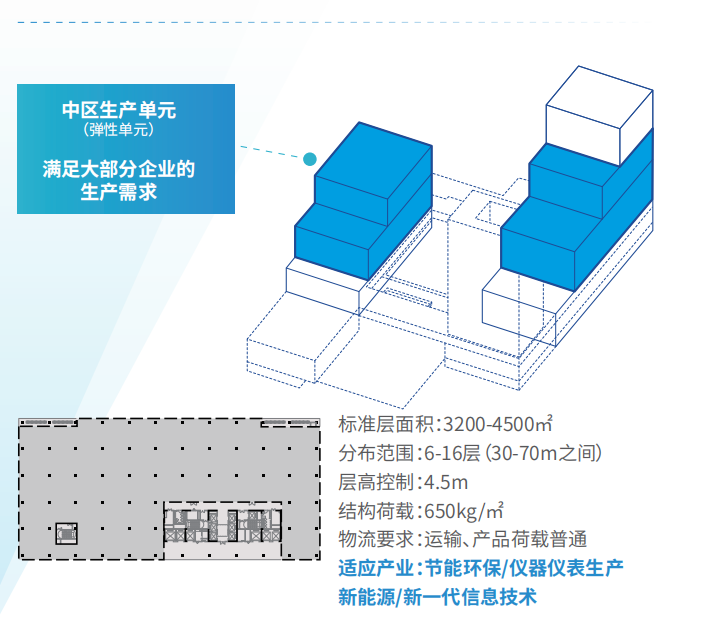 出租建面:3300-5400㎡ 灵动组合 工业上楼 智慧工厂